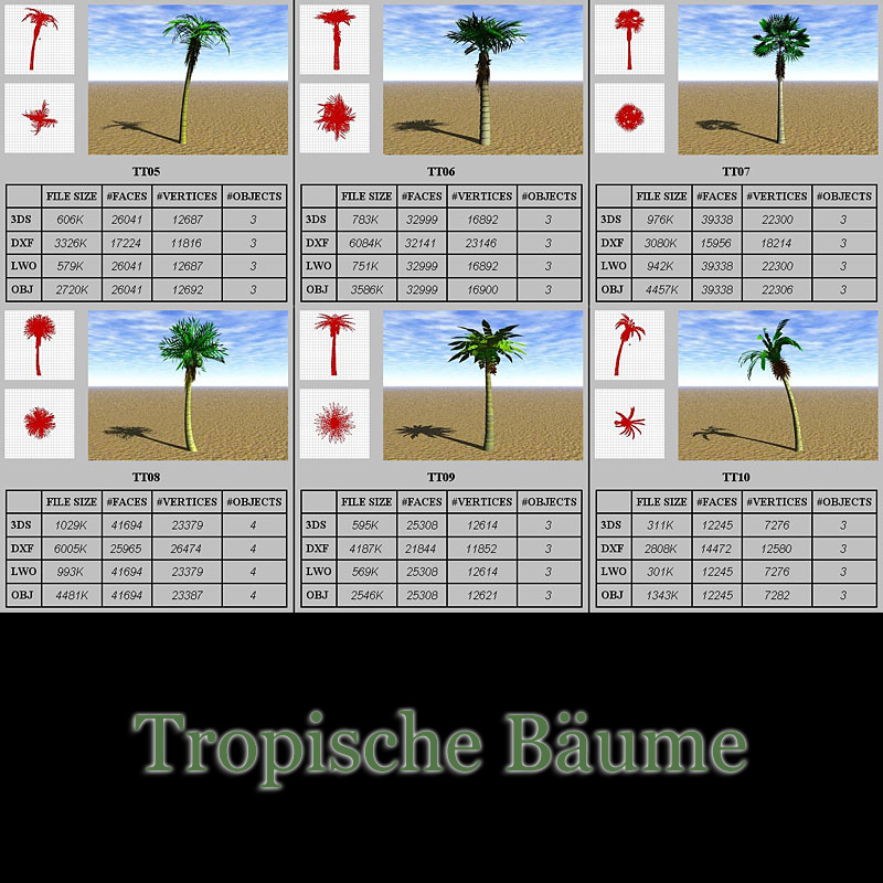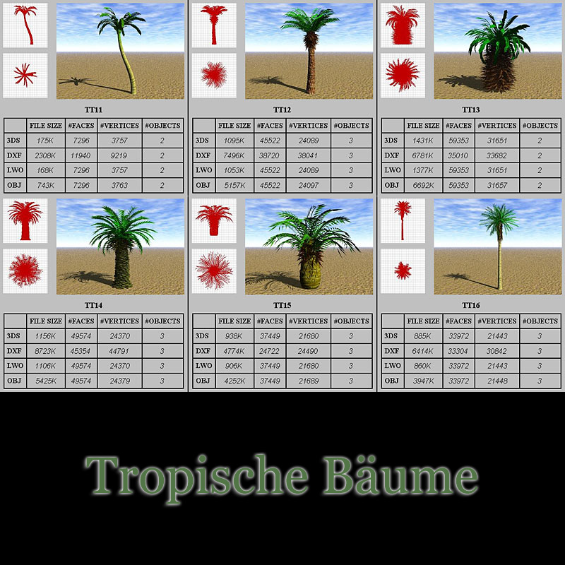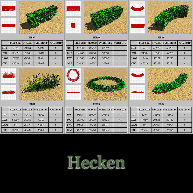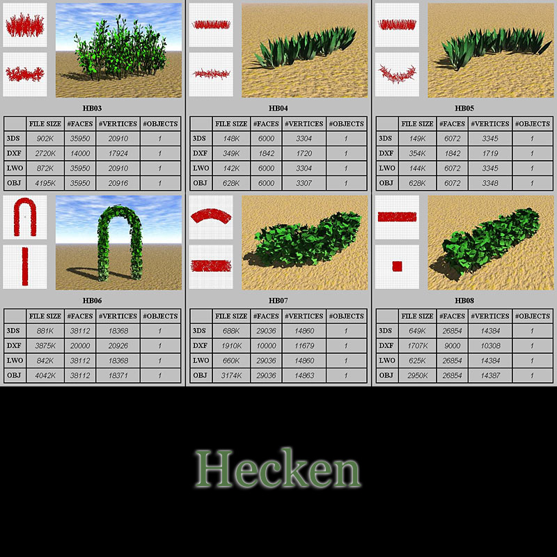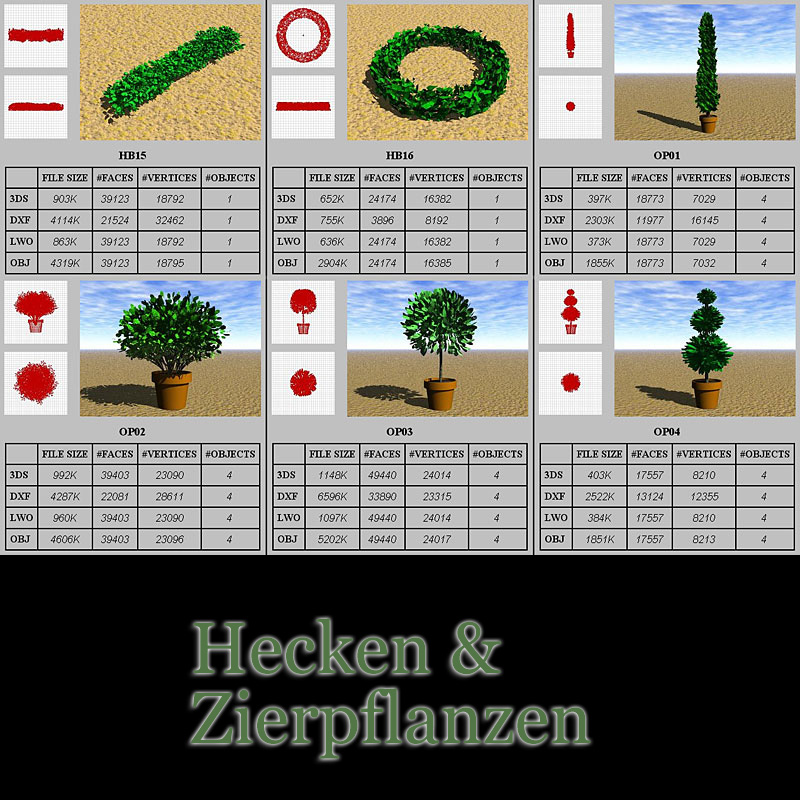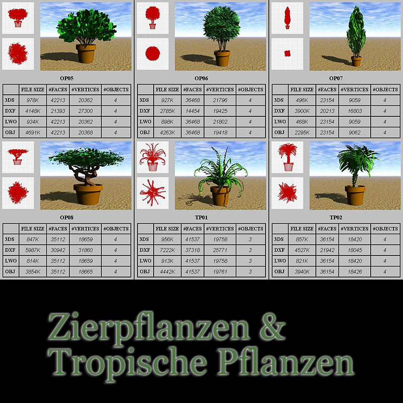 Downloadprodukt. Enthält 60 unterschiedliche Pflanzen als 3D-Modell in den Formaten 3ds, dxf, obj und lwo.