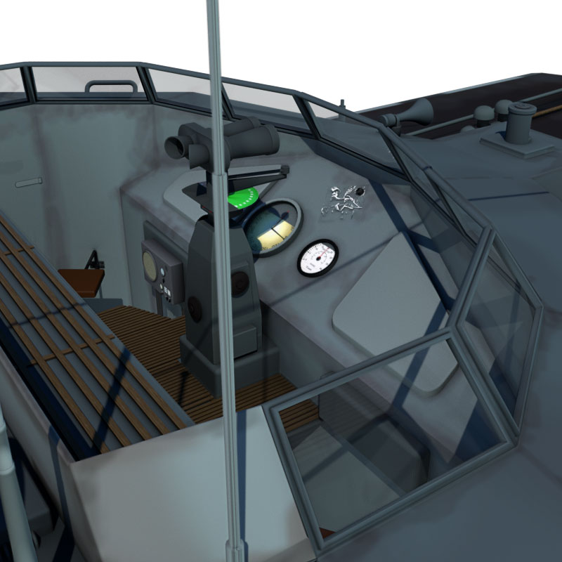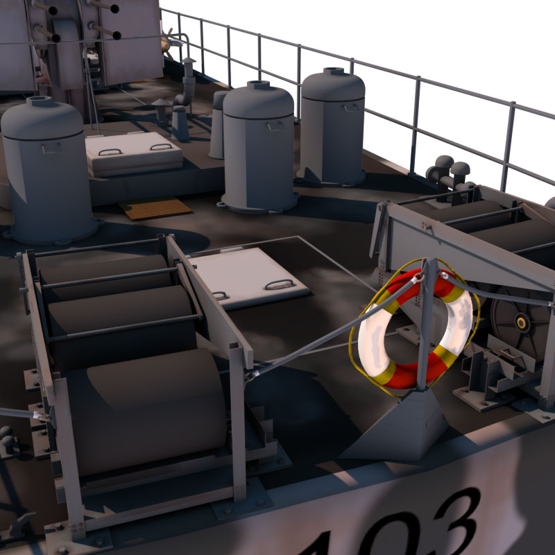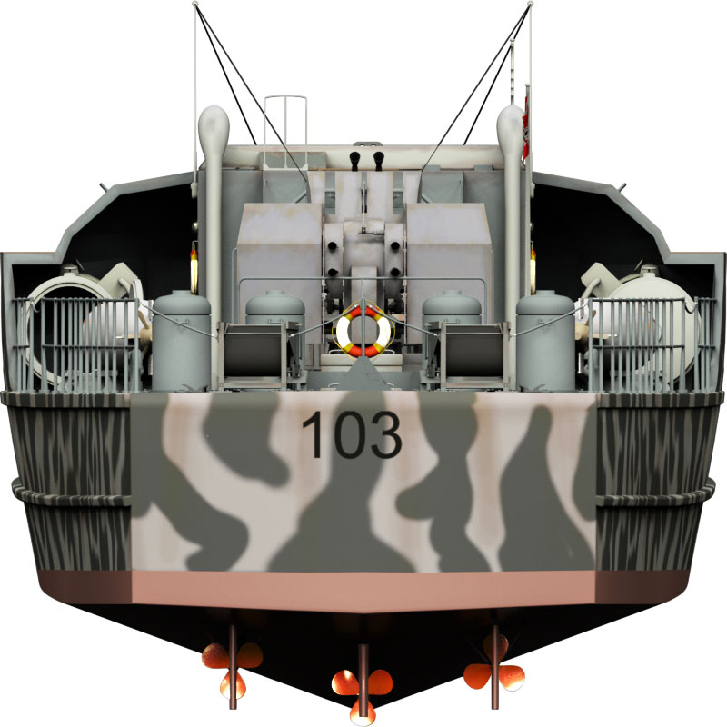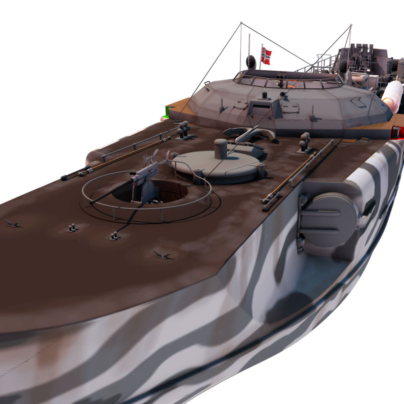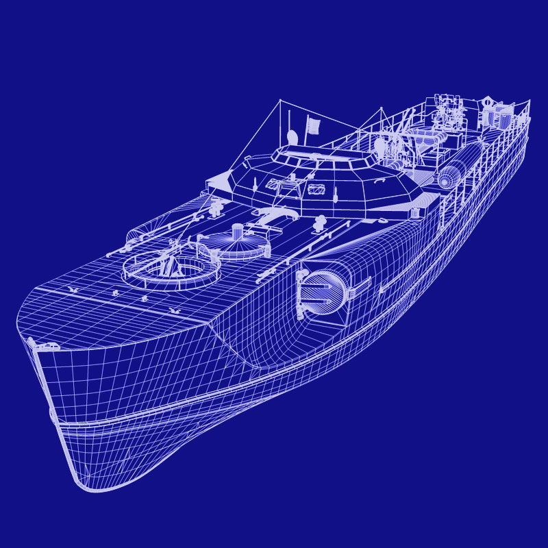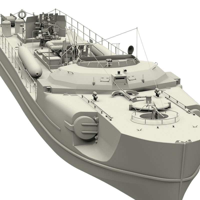 Dieses Schnellboot Typ S 100 ist 3D-Modell eine Schnellbootes/Torpedobootes der deutschen Kriegsmarine aus dem 2. Weltkrieg, basierend auf dem Typ S 38 und Typ S100 in den Formaten obj, c4d, vob und blend. Es liegt kein konkretes Schnellboot dieser Klasse zugrunde. Dies gilt, obwohl das Boot am Heck die Kennzeichnung 103 aufweist und ein fiktives Flottillenwappen trägt.