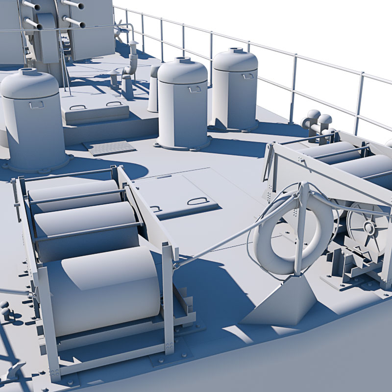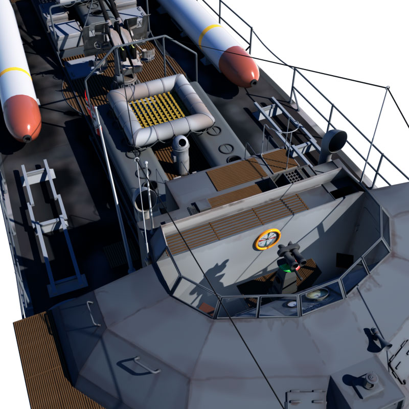 Um Actionszenen mit dem Schnellboot Typ S 100 leichter gestalten zu können, ist ein Torpedo in der OBJ-Version und der C4D-Version als separates Modell zusätzlich dabei. Bei den anderen Dateiformaten ist der Zusätzliche Torpedo direkt in der Programmdatei enthalten und lässt sich dort verwenden.